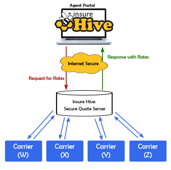 InsureHive™ automates the process of upfront price quoting from multiple carriers providing a better user experience for our licensed agent members.It is important to note that InsureHive™ follows all the accepted industry standards to integrate with carrier rating systems.Furthermore, InsureHive™ follows all the industry standard data security protocols during transportation.
